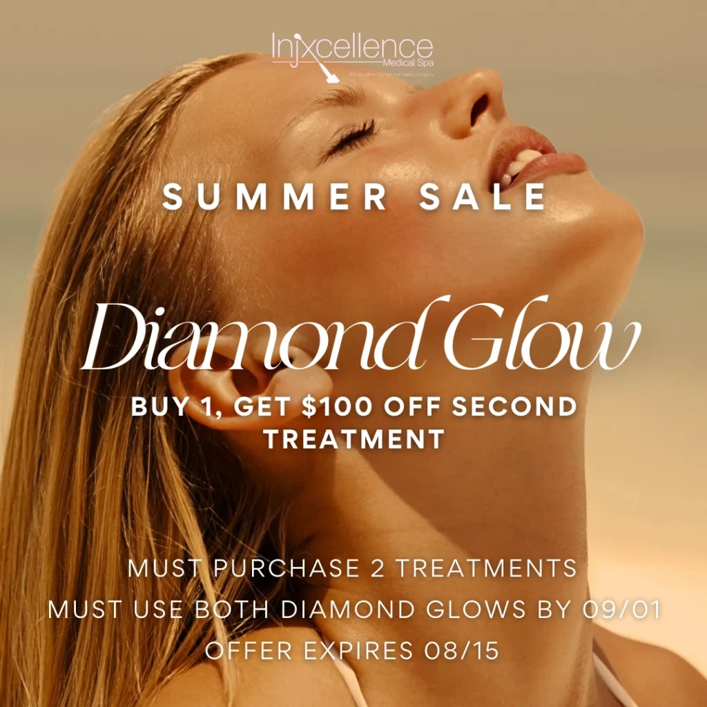 Shimmer and shine this Summer with a Diamond Glow Facial! Experience our most popular spa treatment! Say goodbye to dullness and hello to a luminous complexion that turns heads! Buy one Diamond Glow and get the second one for $100 off! Don’t miss out on our sizzling summer sale. Get your glow on and book today with Denise or Irina!