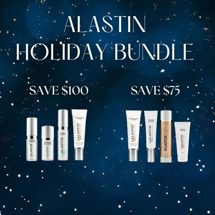Unwrap the gift of beautiful skin with our Alastin Holiday Bundles! Indulge in curated sets designed to pamper and revitalize, giving you the confidence to shine this season. Discover your perfect skincare routine! For a limited time, when you purchase an Alastin Holiday Bundle, you will receive a complimentary travel size A-luminate Brightening Serum, Ultra Nourishing Moisturizer, or Ultra Light Moisturizer (while supplies last).